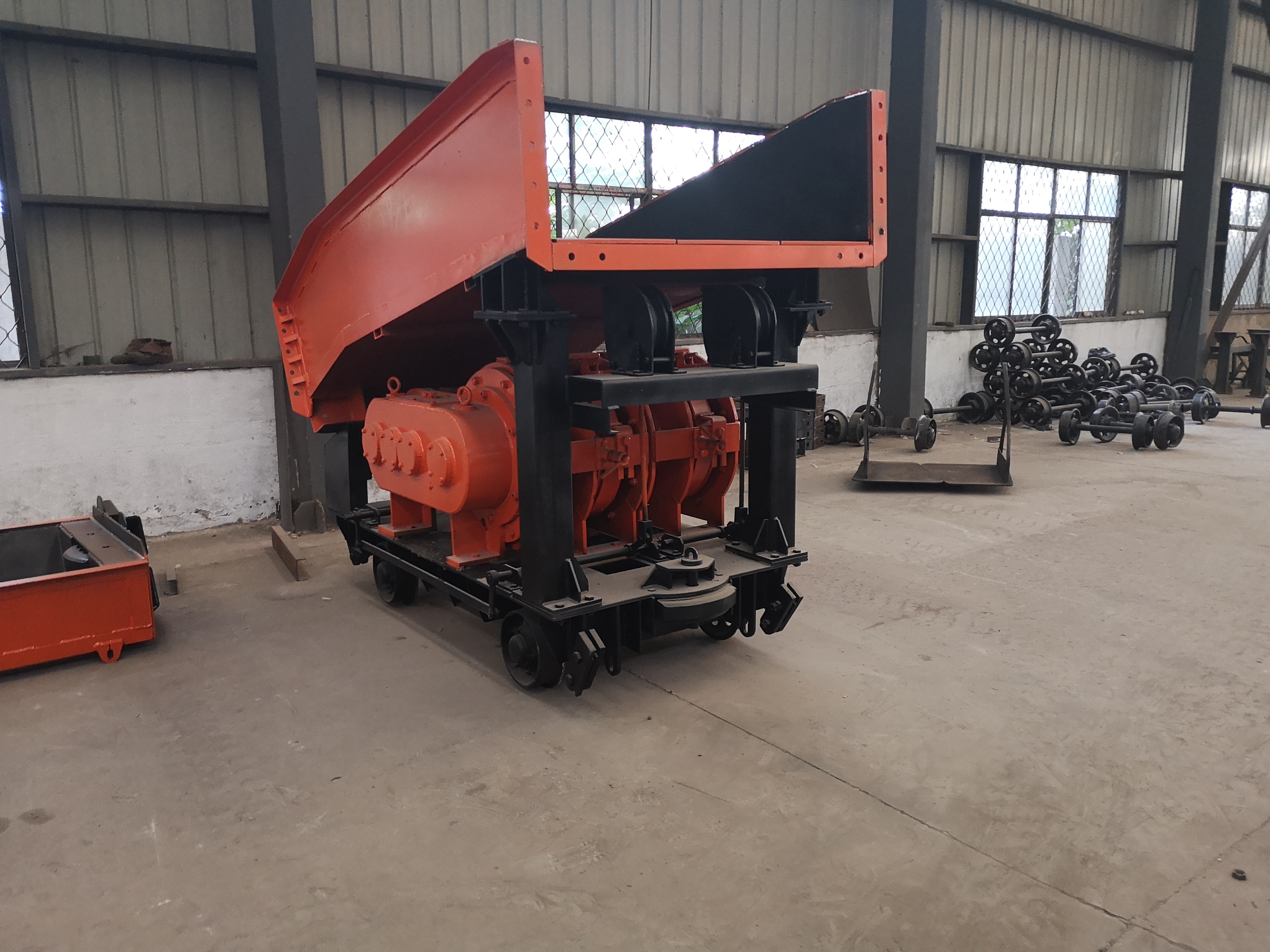 耙斗裝巖機主要由固定楔、尾輪、耙斗、操縱機構、臺車、絞車、導向輪、進料槽、中間槽、卸載槽、電氣部分等組成