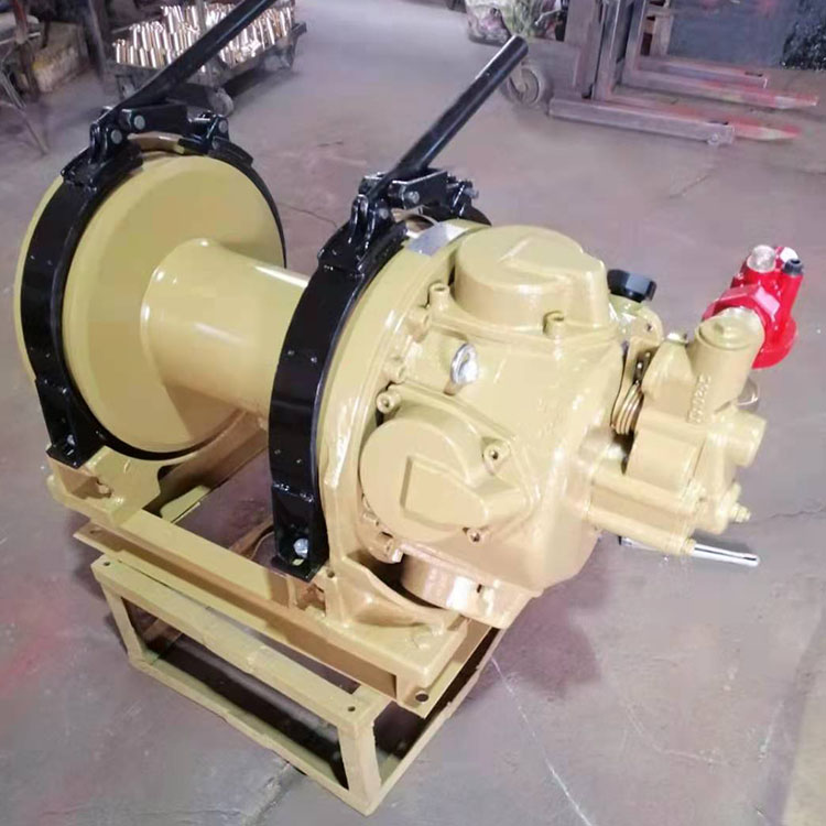 絞車由馬達總成(氣動機)、制動器總成、減速機構(gòu)、卷筒、機座等主要部分組成。