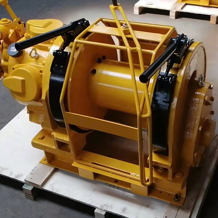 絞車由馬達總成(氣動機)、制動器總成、減速機構(gòu)、卷筒、機座等主要部分組成。