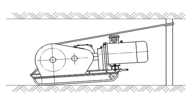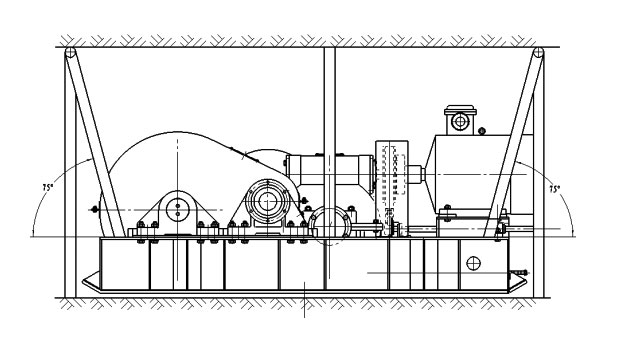 (1)在安裝時必須注意將安裝處的底板上的浮煤,碎石清理干凈,直到露出巖石為止,并且應(yīng)使地基平坦,無凹凸現(xiàn)象,最后用支柱將絞車牢牢的頂死在頂板和底板之間。