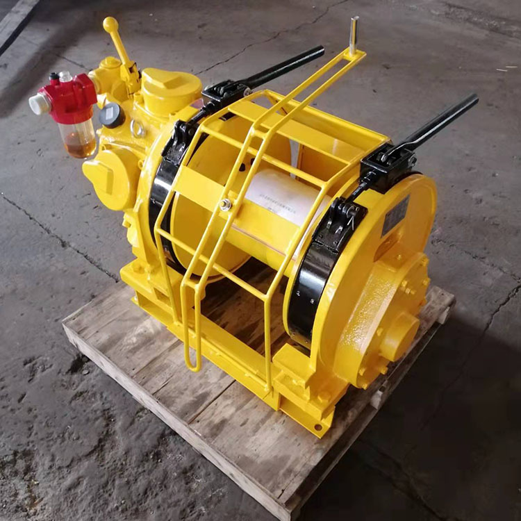 絞車由馬達總成(氣動機)、制動器總成、減速機構、卷筒、機座等主要部分組成。
