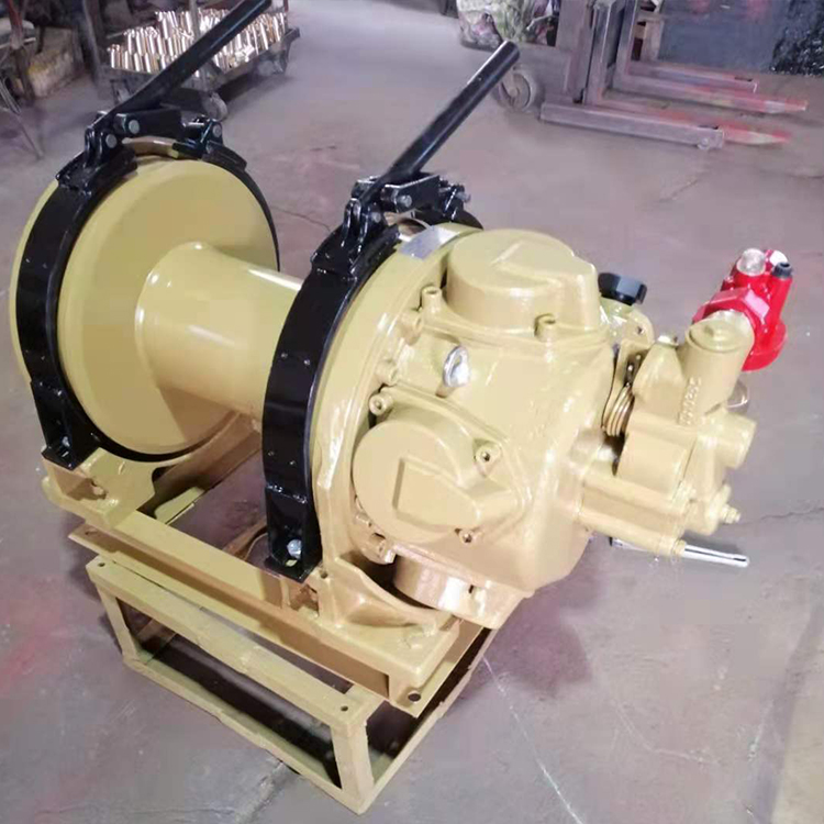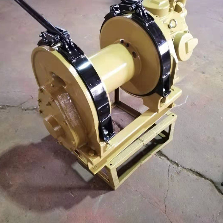 絞車由馬達(dá)總成(氣動(dòng)機(jī))、制動(dòng)器總成、減速機(jī)構(gòu)、卷筒、機(jī)座等主要部分組成。